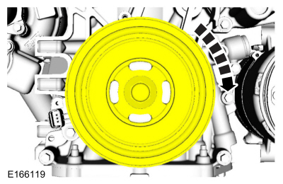 Install Special Service Tool: 303-393A Locking Tool, Flywheel. , 303-393-02 Adapter for 303-393.![]() |