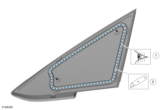 Install the front quarter window glass. Using tape, secure the front quarter window glass in the correct position until the adhesive has cured.![]() |