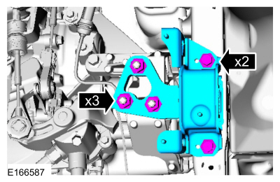 If required, remove the bolts and remove the transmission support insulator bracket.