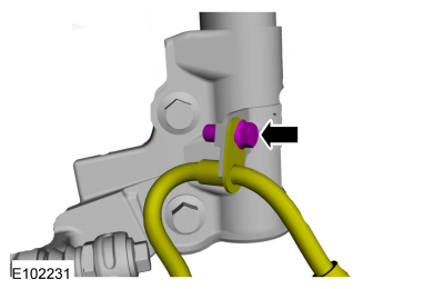 Remove the brake hose bracket bolt and position the brake hose aside.